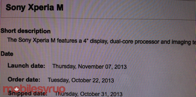 Update: Virgin Mobile is also set to launch the Xperia M. Dummy devices have arrived at retail locations.