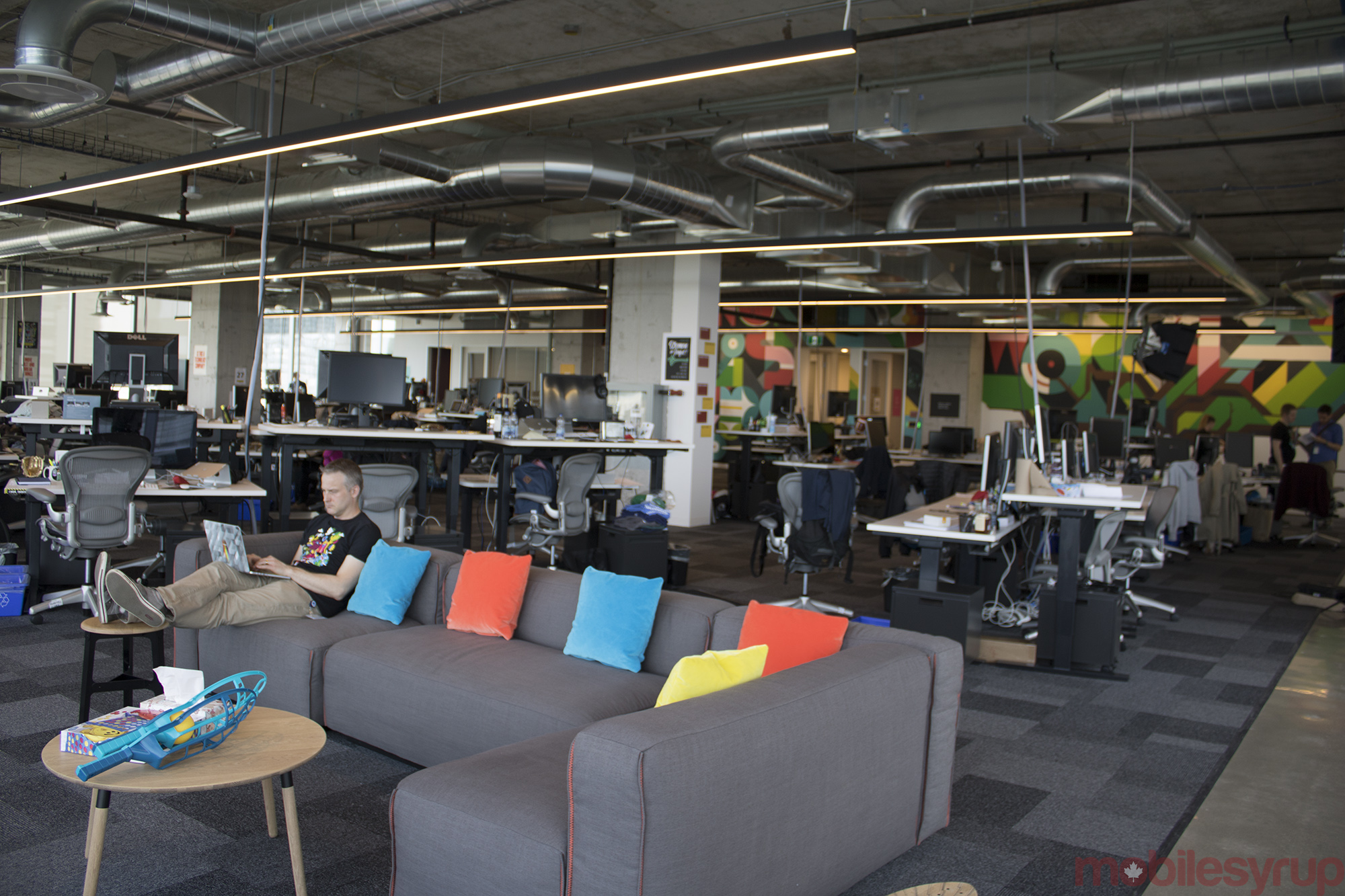 There are 14 conference rooms and each has a specific Canadian name, such as Give’er, Hotline Bling, Terry Fox, Two Four, The Gretzky, Because It Is 2015, Coach’s Corner, The Skydome, Loonie Bin, We The North, Boardroom Eh, and Degrassi Junoir High.