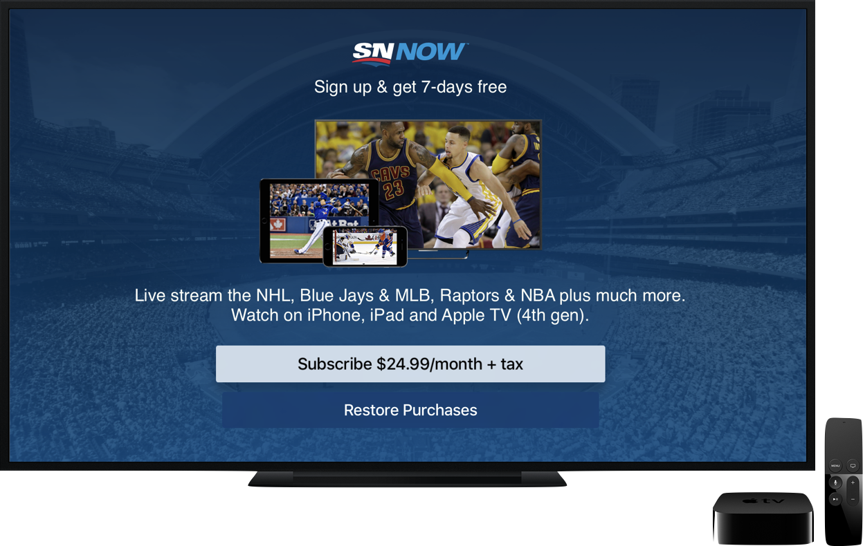Sportsnet Now is available on iOS, 4th Generation Apple TV and the Google Play Store.