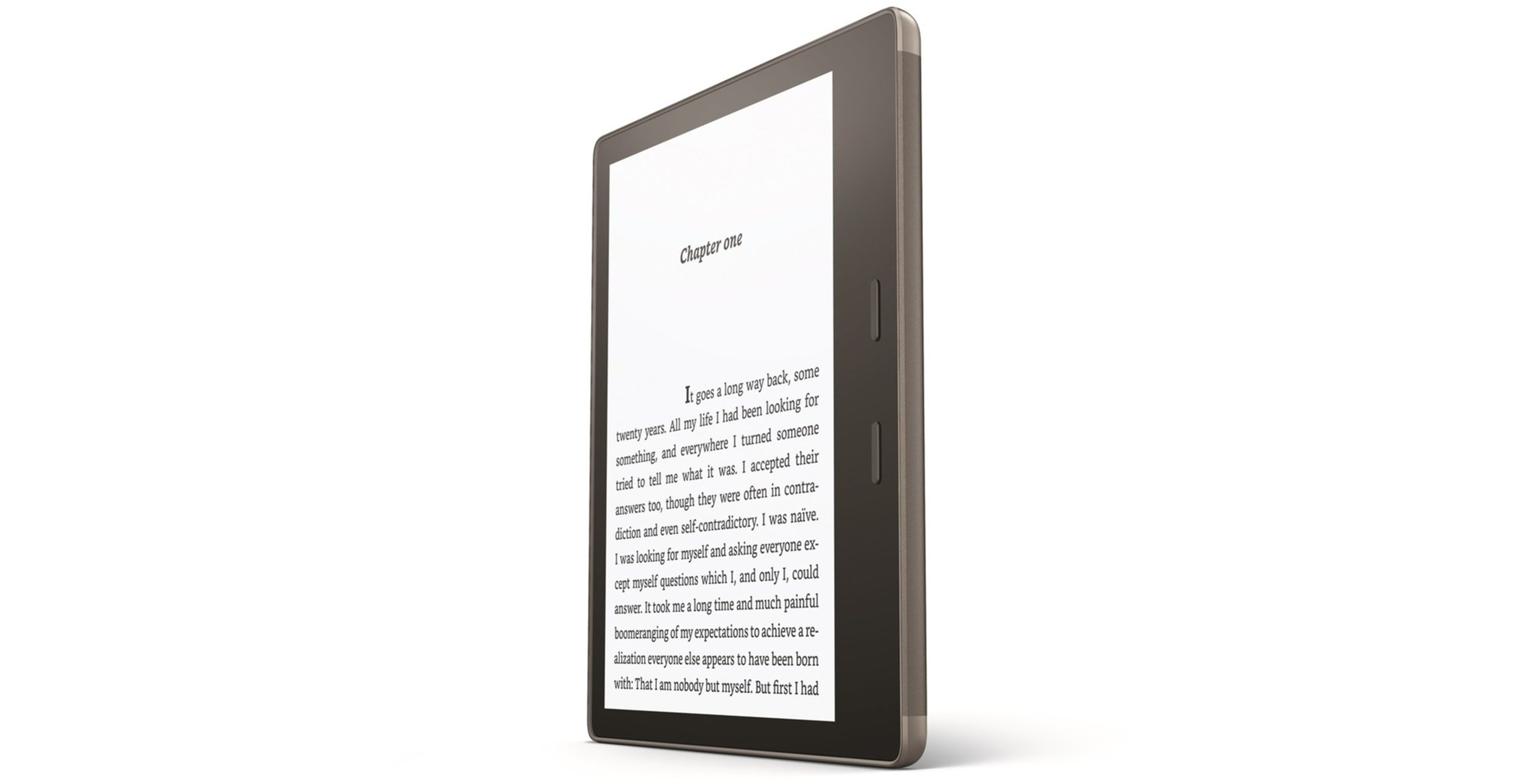 The waterproof Oasis also has some distinctly Kindle traits, though. It features an ergonomic design like the much smaller 2016 Kindle Oasis, designed to shift the center of gravity to the reader’s palm. The dedicated page turn buttons also return, as does the automatic rotation of page orientation depending on whether you hold it with your left or right hand.