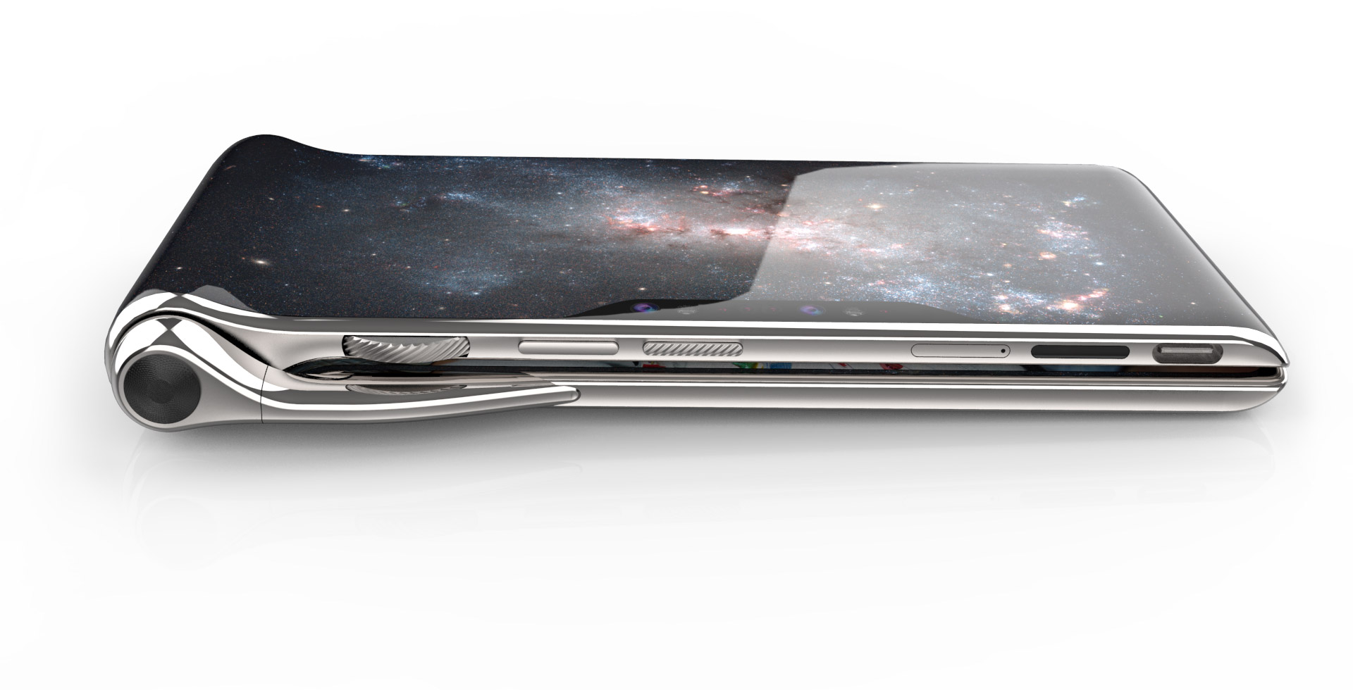 However, if 60-megapixels aren’t enough, the phone also has five more cameras. The HubblePhone sports a dual 12-megapixel camera setup with two variable apertures (f/1.5-f/2.4) on the upper deck within a side notch. It also supports another side notch on the flipside of the upper deck which hosts a single 12-megapixel module.