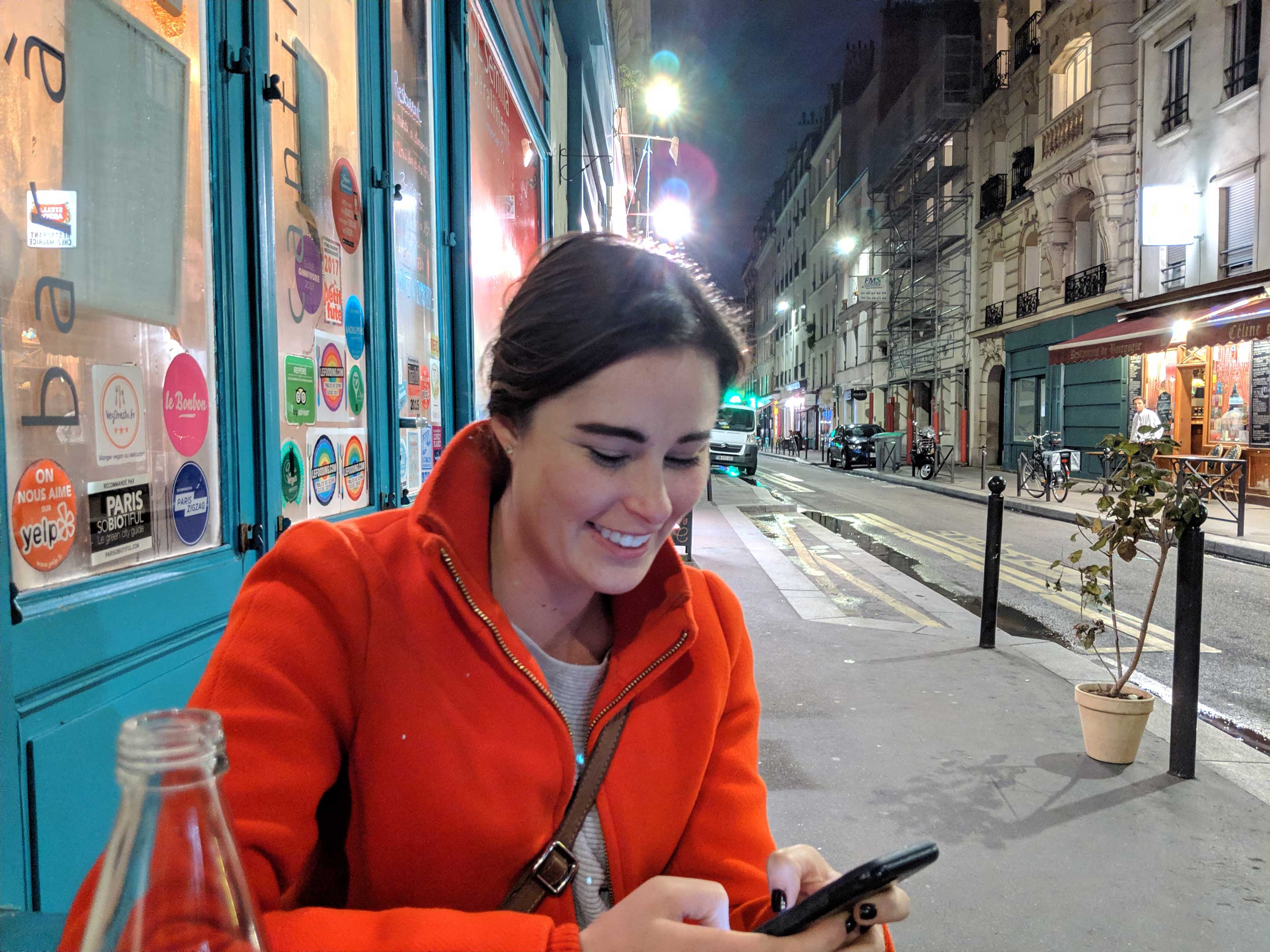 However, as with all low-light modes of this type, there are limitations to Night Sight. Due to the mechanics of how the mode works, it’s not ideal at capturing movement. In the third shot below, you can see how the waiter in toward the right side of the frame is blurred. Best use cases involve nighttime cityscapes, like in the first shot below, as well as posed selfies and group shots.