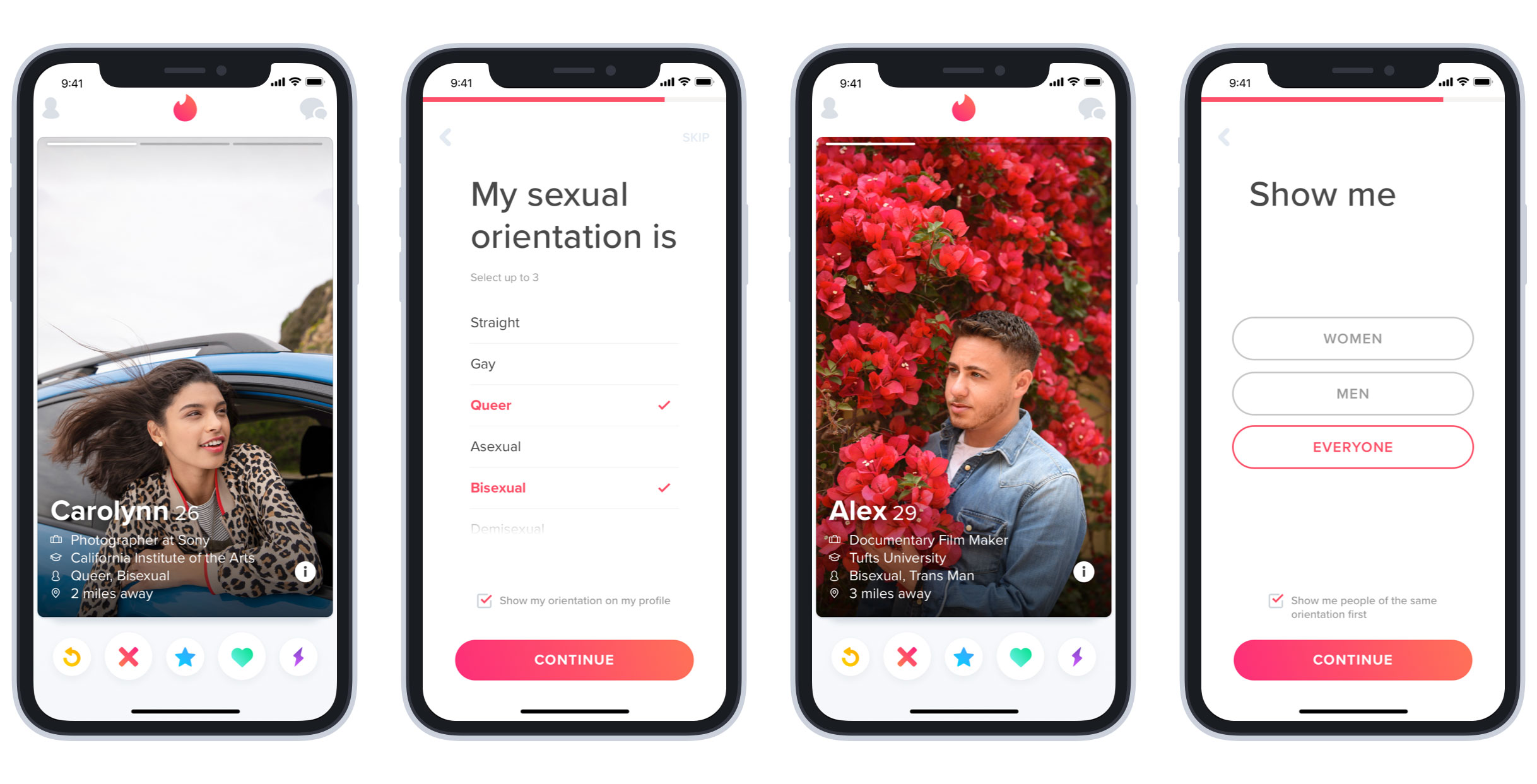 Users can choose to show this information on their profile. They can also decide whether they see people with the same orientation first when swiping.