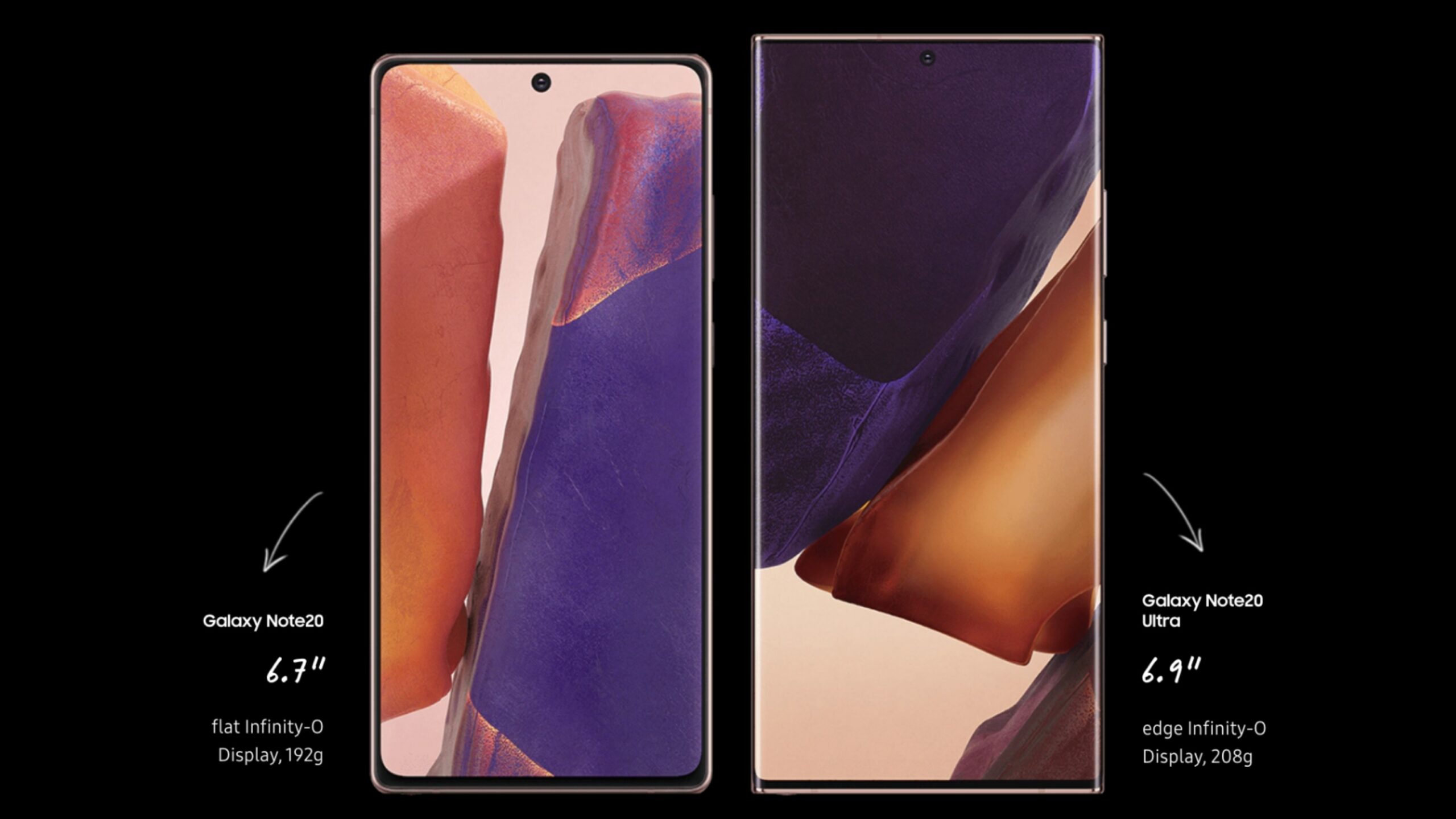 The Note 20 measures 6.7-inches and the Note 20 Ultra is 6.9-inches. The Note 20 comes in ‘Mystic Bronze,’ ‘Mystic Green,’ and ‘Mystic Grey,’ while the Note 20 Ultra comes in ‘Mystic Black’ and ‘Mystic Bronze.’