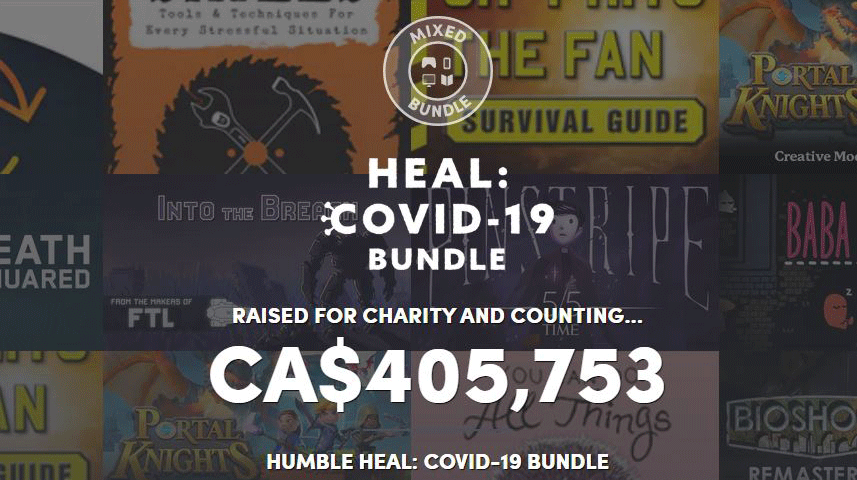 Humble Bundle has sold over 15,000 Humble Heal bundles and has raised over $400,000 (roughly $485,646 CAD). One hundred percent of the proceeds from the bundle will go to charities such as Direct Relief, Doctors Without Borders (MSF), International Medical Corps and GiveIndia.