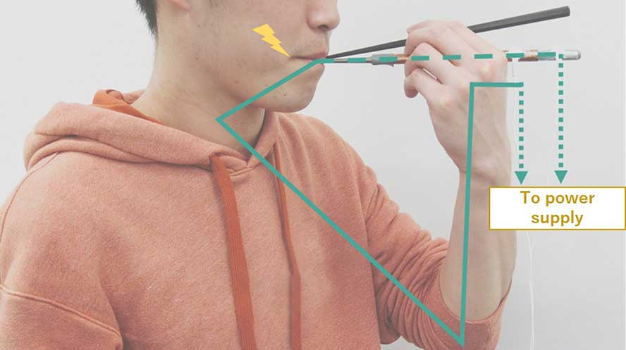 The chopsticks connect to a wristband-like device that powers the cutlery and uses electrical simulation to transmit weak sodium ions directly into your mouth when you grab a bite, creating a false sense of saltiness. According to the research, the chopsticks are able to enhance the salty taste in low-sodium food by about 1.5 times.