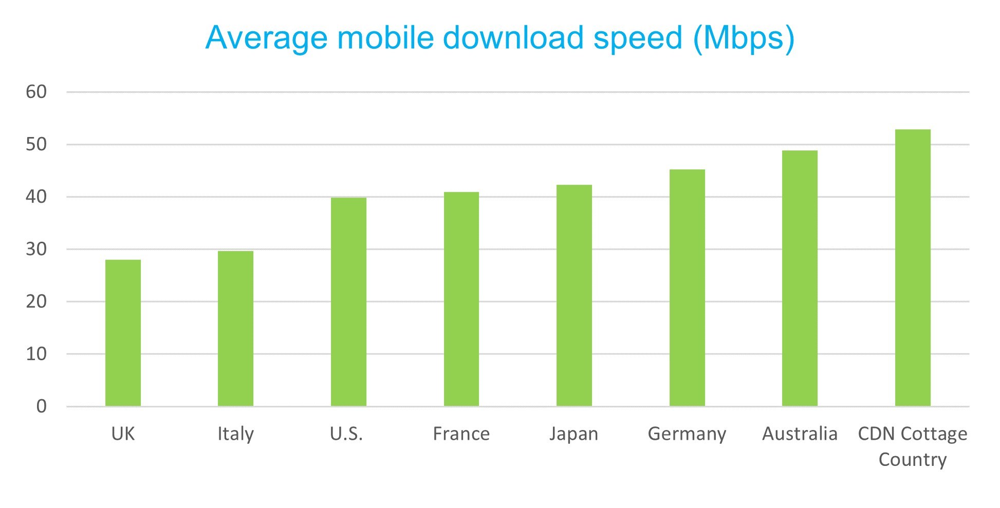 The average mobile download speed in cottage country regions is faster than those in the U.K., Italy, the U.S., France, Japan, Germany and Australia