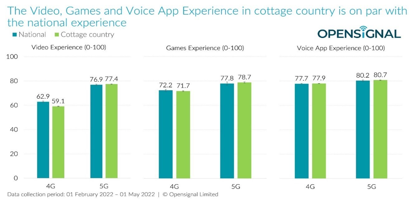 “Whether on a 4G or 5G network, cottage country users’ experiences while streaming videos, playing multiplayer mobile games or using (OTT) voice app services shows very little or no significant difference from the national experience,” reads the report. The report also suggests that users in cottage country regions were connected to 4G or 5G networks 93.3 percent of the time, which is only 1.4 percent lower than the national average.
