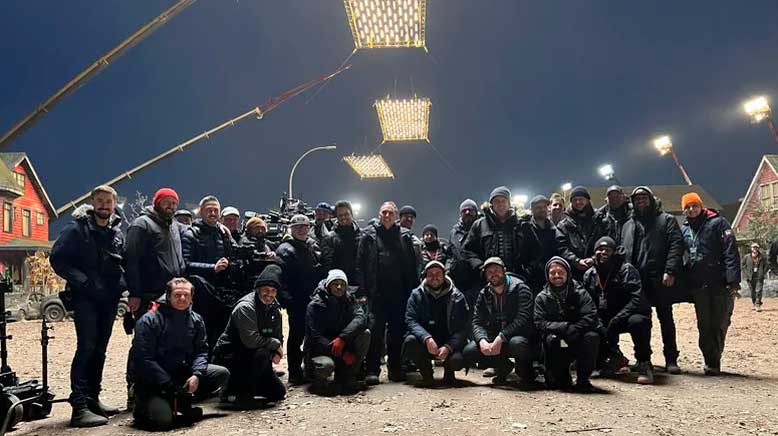 The team set up four grids of 100 light each with no fabric. The decision to have to fabric was to allow the wind to pass through. “In total, we had 400 of these lights on these huge cranes hanging over the set, which gave us the soft ambience but without any fabrics,” Bolter said. “So that when the wind got up, and it did get up to 50, 60 miles per hour, it just passed through them and we could keep filming.”