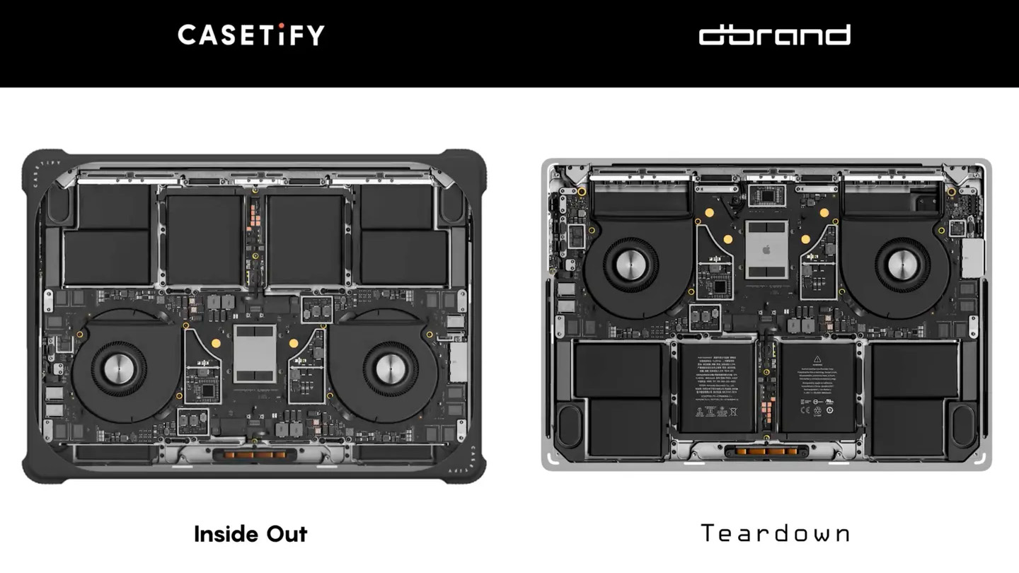 dbrand says the images used for Casetify’s new line are stolen from its designs. The company claims Casetify rearranged some of the parts in its photos in an attempt to make them look different but that they’re still stolen from its own scans. There are even minor Easter eggs dbrand added to its scans, including “RO807,” a tag tied to the company’s branding, that appear in Casetify’s Inside Out line (you can find the full X thread of comparisons here — the evidence is pretty damning).