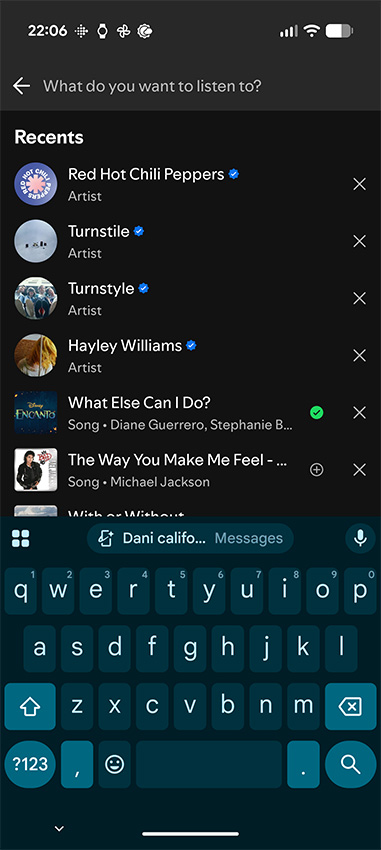 The other night I wanted to listen to some music with my wife, so I pulled up Spotify on my phone to search for a song. My wife had texted me earlier that day saying she wanted to listen to Dani California. When I tapped the search bar in Spotify, I was quite surprised to see Magic Cue appear above my keyboard, suggesting Dani California.
