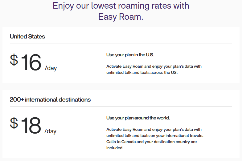While my cellular plan includes U.S. roaming, which is great for me when I travel, I also have Easy Roam for when I leave North America — although for $18/day, I might consider using an eSIM on my next Eurotrip.
